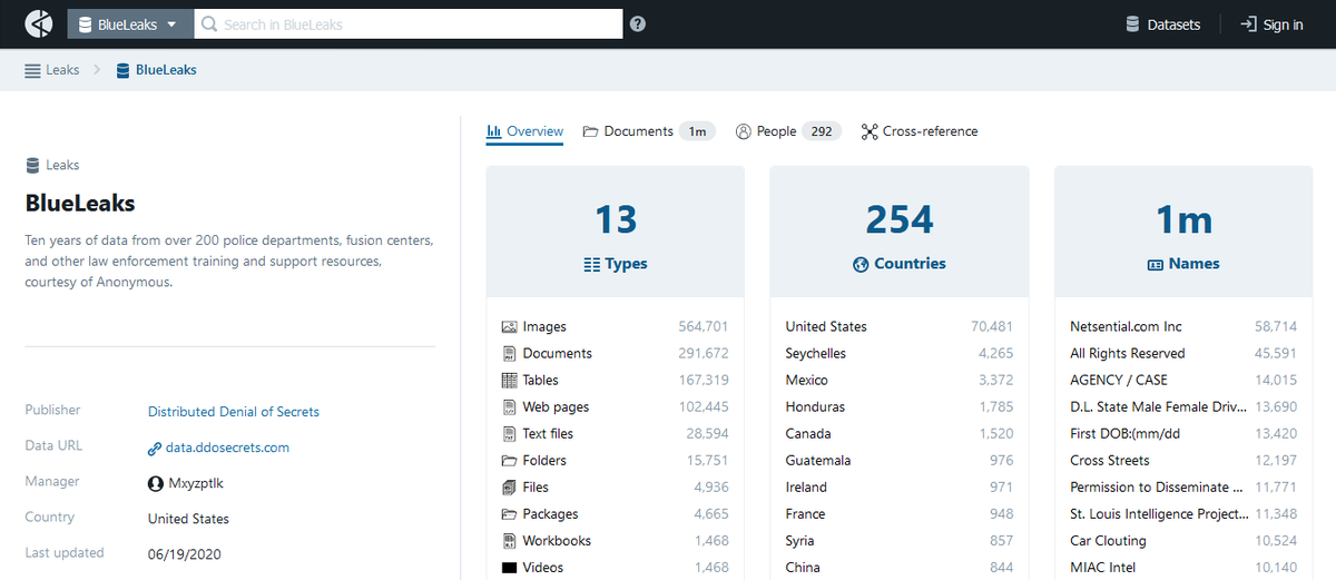 The data dump, dubbed BlueLeaks, contained millions of documents that were stolen from a Texas company named Netsential that provided web hosting services for various US law enforcement entities.