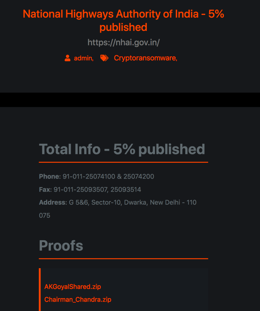 As part of regular darkweb monitoring, researchers from threat intelligence firm has spotted the data leak of National Highways Authority of India (NHAI). The Maze ransomware operators allegedly breached the NHAI and leaked the data of their leak site.