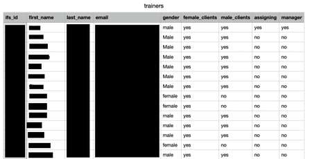 CSV files appearing to contain the information relating to both trainers and clients remain exposed. IDs, first and last names, email addresses, genders, and client email addresses are included.Â