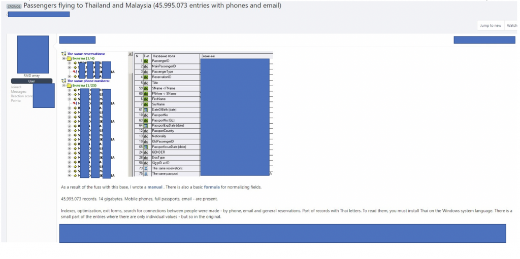 Experts from threat intelligence firm have discovered the availability on the darkweb of records of over 45 million travelers to Thailand and Malaysia from multiple countries.