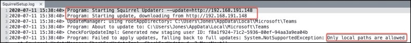 “As per the patch, Microsoft Teams Updater will allow only local network paths to access and update, that means it will detect the string “http/s”, “:”, “/” and port numbers in the updater URL, blocks and log the activity under %localappdata%MicrosoftTeamsSquirrelSetup.log.” reads the analysis published by Trustwave.