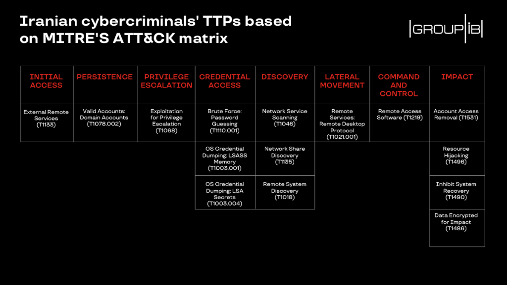 “The fact Dharma source code has been made widely available led to the increase in the number of operators deploying it,” said Oleg Skulkin, senior DFIR analyst at Group-IB. “It’s surprising that Dharma landed in the hands of Iranian script kiddies who used it for financial gain, as Iran has traditionally been a land of state-sponsored attackers engaged in espionage and sabotage. Despite that these cybercriminals use quite common tactics, techniques and procedures they have been quite effective. Therefore, we believe it’s important to provide some recommendations on how to protect against them and give a complete outline of the MITRE ATT&CK mapping.”
