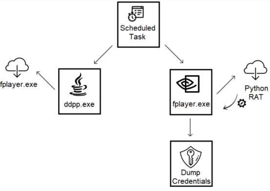 The malware achieve persistence using the Run registry key, it creates a scheduled task named “Dolby Selector Task” for ddpp.exe.