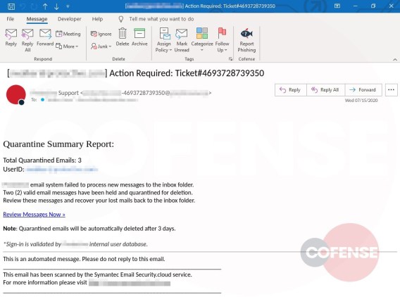 âThis could potentially lead the employee to believe that the messages could be important to the company and entice the employee to review the held emails.â continues the report. âAnother social engineering technique the threat actor uses to lure the employee into interacting with the email is giving the messages urgency, asking the recipient to review them or they will be deleted after three days.â