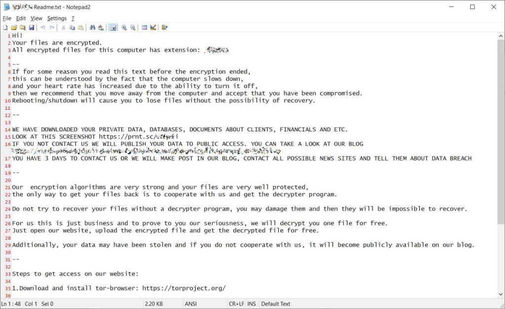 The ransom note employed in this attack was specifically crafted for Equinix and includes a link to a screenshot of the stolen data.