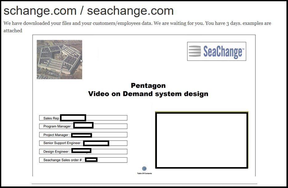 In April, SeaChange International was the victim of the Sodinokibi Ransomware gang.