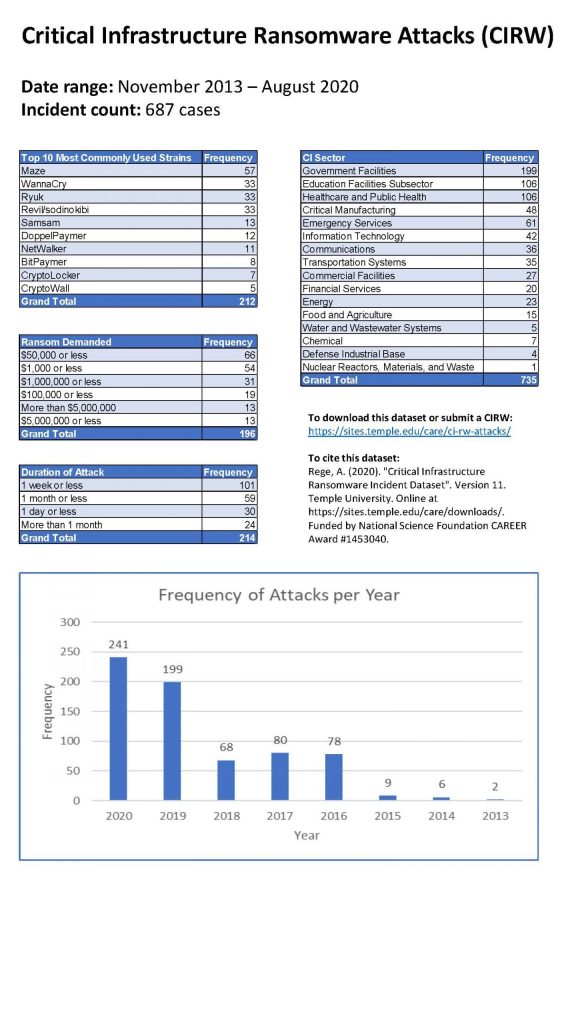 Researchers from Temple University have been tracking ransomware attacks on critical infrastructure all over the world.