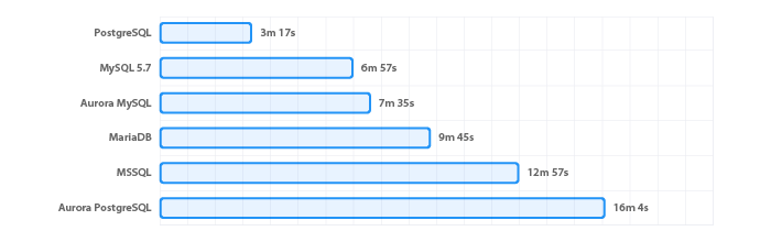 We conducted thorough performance tests on PostgreSQL, MySQL 5.7, MSSQL, Aurora MySQL, and Aurora PostgreSQL. Employing pgbench as our benchmarking tool, each database was tested on m5.2xlarge instances with a boosted storage of 12000 IOPS to gauge its peak performance.