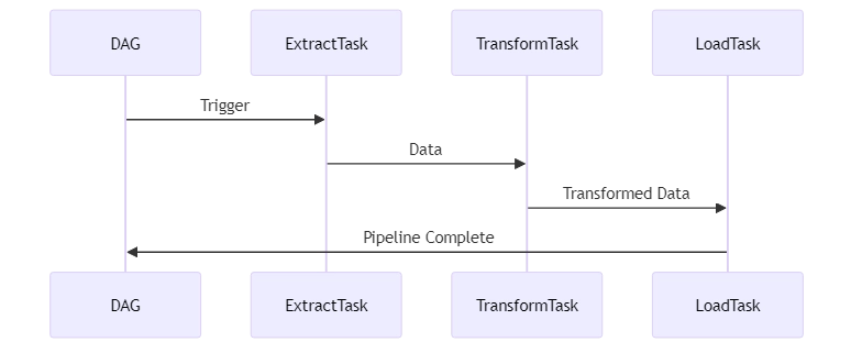 In this example, the data pipeline DAG consists of three tasks: extract, transform, and load. PythonOperator defines the tasks, and you specify the dependencies between them using the >> operator. Airflow will ensure that it executes the tasks in the correct order based on the defined dependencies.